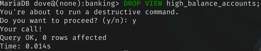 DROP VIEW high_balance_accounts;